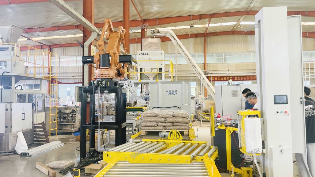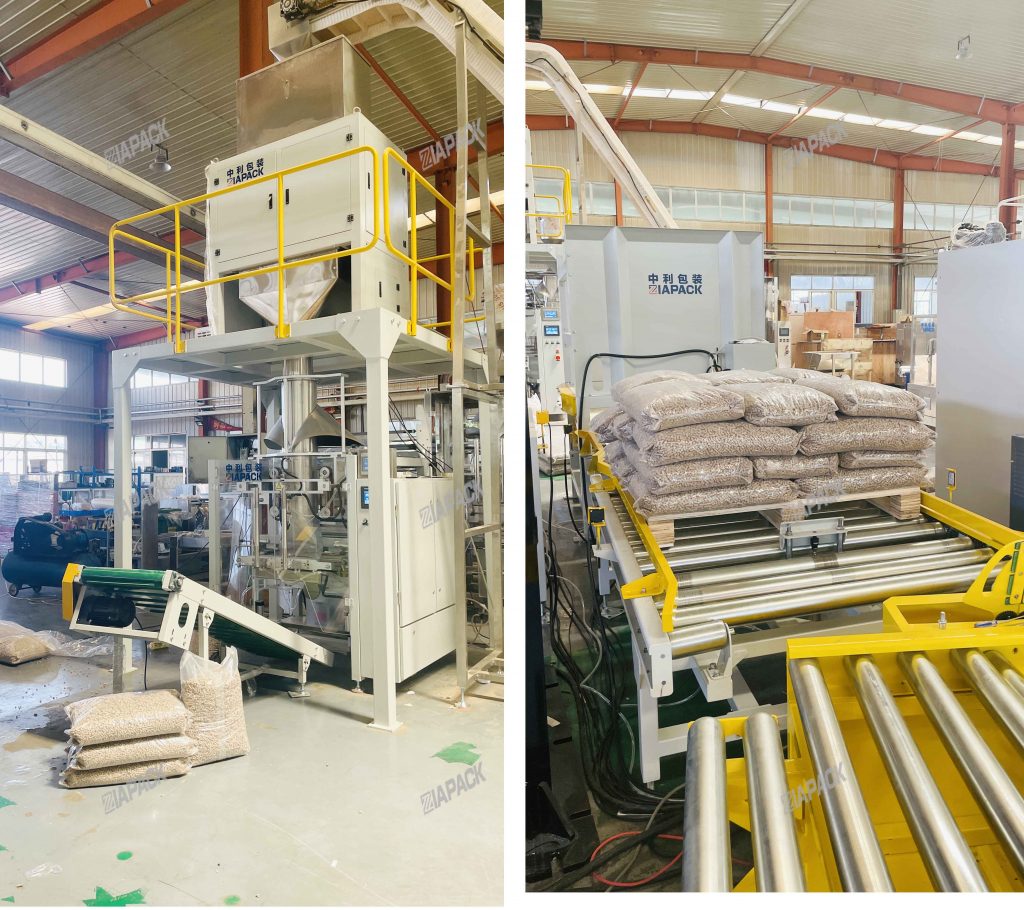 Ön itt van: itthon » hírek » 15KG Fapellet mérlegelés töltés zsákolás Raklapozó sor készen áll a szállításra