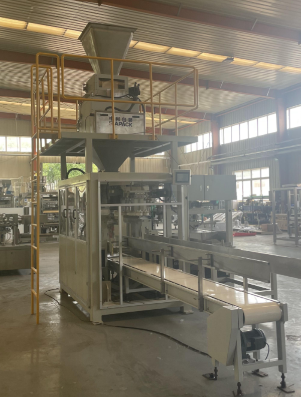 Ezt a csomagológépet granulált anyagok, például vegyszerek, takarmányok, gabona- és vetőmagok csomagolására fejlesztették ki. Az egység automatikus zacskóbeszedéssel, automatikus töltéssel, automatikus zacskószállítással és lezárással rendelkezik. Minden típushoz csatlakoztatható. szemcseanyag-gyártó berendezések munkavégzése a nagyméretű csomagolási műveletek felügyelet nélküli legyártása érdekében.LCD érintőképernyős vezérlés .Ember-számítógép interfész kedvezőbb .Automatikus hibadiagnosztika .Biztonsági leállás védelem. Gyors beállítás és egyszerű karbantartás.