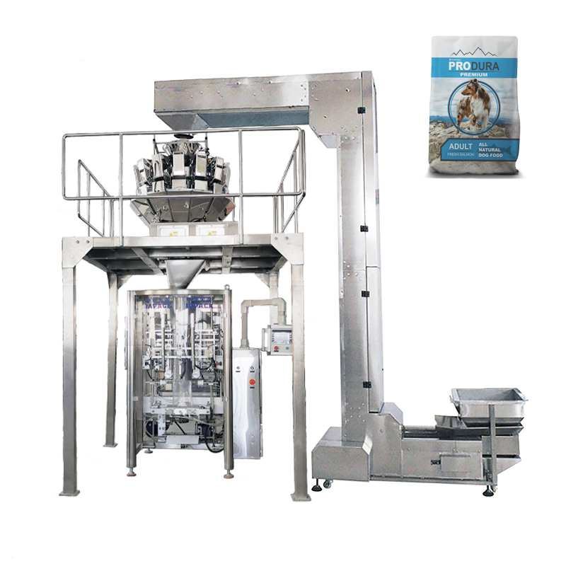 Ez a gyártósor egy készlet ZL14-1.6L többfejű mérőgépet tartalmaz. Egy készlet ZL520 függőleges zacskóképző töltőtömítést, egy Z típusú serleges felvonót és egy készlet platformot és létrát. Az egész gép képes automatikusan kimérni a kis szemcsés terméket és csomagolni tekercses fóliatasakba. Széles körben használható rizsbab cukor chips csomagolására és így tovább. Az egész gépet a Stainless Steel 304 gyártja, ez a gép zacskókészítéssel, vágással, kódnyomtatással van felszerelve. stb. Siemens PLC és érintőképernyő, Panasonic szervomotor, japán fotóérzékelő, koreai levegőszelep stb.
