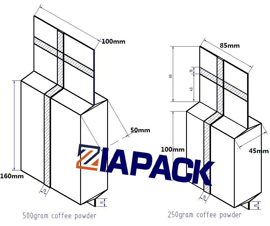 Ez a gép egy készlet ZL520 függőleges zacskókészítő csomagoló- és zárógépet, egy ZL2000 csigás mérőgépet, egy ZL100V2 dupla vákuumkamrás csomagológépet és egy készlet kimeneti szállítószalagot tartalmaz. és porszívózás. Választhat hőtranszfer kódológépet, amelyek népszerűbbek a kávétégla vákuumzacskókon történő dátumkódoláshoz. Ezt a gépet széles körben használják élelmiszer-gyógyszertári vegyi és egyéb termékek por vagy kis granulátum csomagolására. Mint a kávépor, az élesztőpor búzaliszt és így tovább. Az egész gép belsejében szivattyúzzák a vákuumterméket. A vákuum mértéke nagyon magas, és a csomagolási sebesség nagyon magas, elérheti a 8 zacskó/perc értéket. A késztermék nagyon szép, és van hosszú eltarthatósági idő.