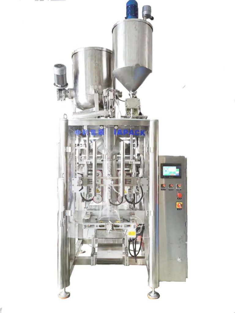 Ezt az egységet folyékony és viszkózus termékek igényeire fejlesztették ki. Az egység egy fugázógépből és egy csomagológépből áll; a csomagológép egyszerű szerkezetű és könnyen kezelhető; a gép integrálja a zacskókészítés, a töltés, a lezárás és a számlálás funkcióit. Szervomotort használ a fólia húzására, és automatikus eltérés-korrekciós funkcióval rendelkezik.