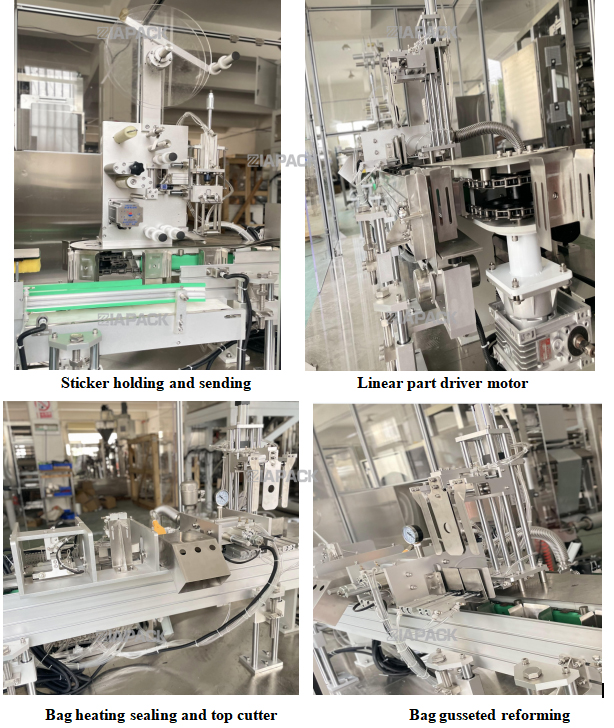 A gép viszi a táskát, egyszer hajtja át a táska száját, majd ragassza fel a címkét. A gépvázat SUS304 .PLC és az érintőképernyőt a Siemens márka veszi át. A pneumatikus alkatrészek pedig az SMC márkát alkalmazzák. A fő elektromos alkatrészek az Omron és a Schneider márkát veszik át .