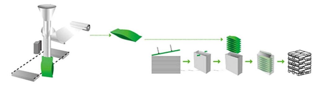 Ez a gép alkalmas kis zacskó nagy zsákba történő csomagolására. A gép automatikusan elkészíti a zsákot, és kis zsákba tölti, majd lezárja a nagy zsákot. Ez a gép az alábbi egységekkel együtt: