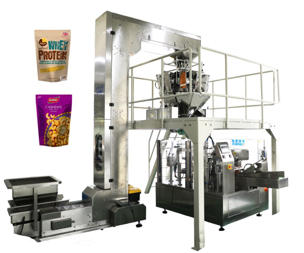 Rotációs zsákos csomagológép különböző adagolással (pl. többfejű súlyú, csigás töltőanyag, folyékony töltőanyag stb.) alkalmas lehet granulált, por, folyadék, paszta stb. automatikus csomagolására. Különböző típusú termékek a premade stand-up cipzáras tasakkal és így tovább.
