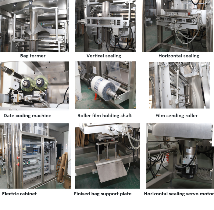Ez a gépegység tartalmaz egy készlet ZL720 függőleges zacskóképző tömítőgépet és egy ZLC-5000 négyvödörös mérőgépet, egy készlet DT3 függőleges felvonót és kimeneti szállítószalagot. A teljes gépegység elérheti az automatikus zacskókészítést, a termékmérést, a terméktöltést. tömítés és dátumkódolás. Széles körben használják lécek, mosópor, rizs, bab és egyéb szemcsés termékek csomagolására.